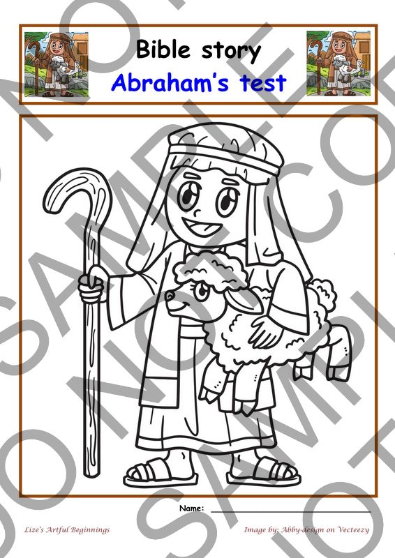 A4 Single worksheet for Bible story Abraham's test.