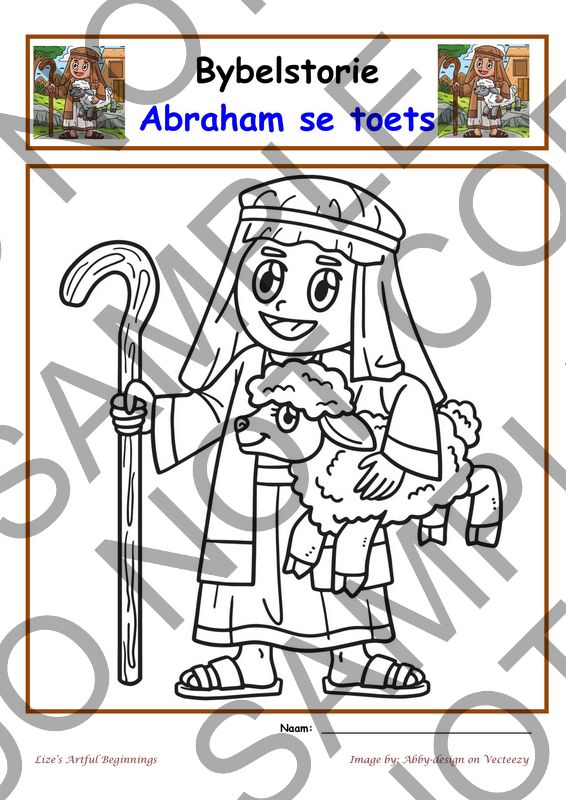 A4 Werkkaart vir Bybelstorie van Abraham se toets.