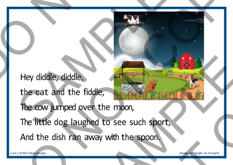 A4 Kleurbladsy - Die koei spring oor die maan rympie.
