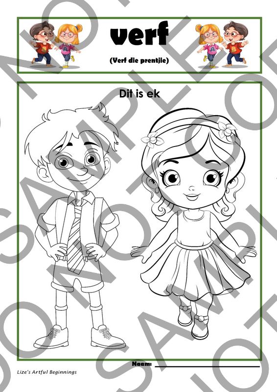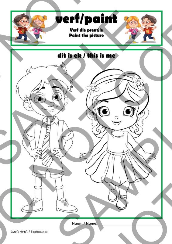 Voorblad, verf, skeur en plak, 4 x inkleur en 'n rympie.