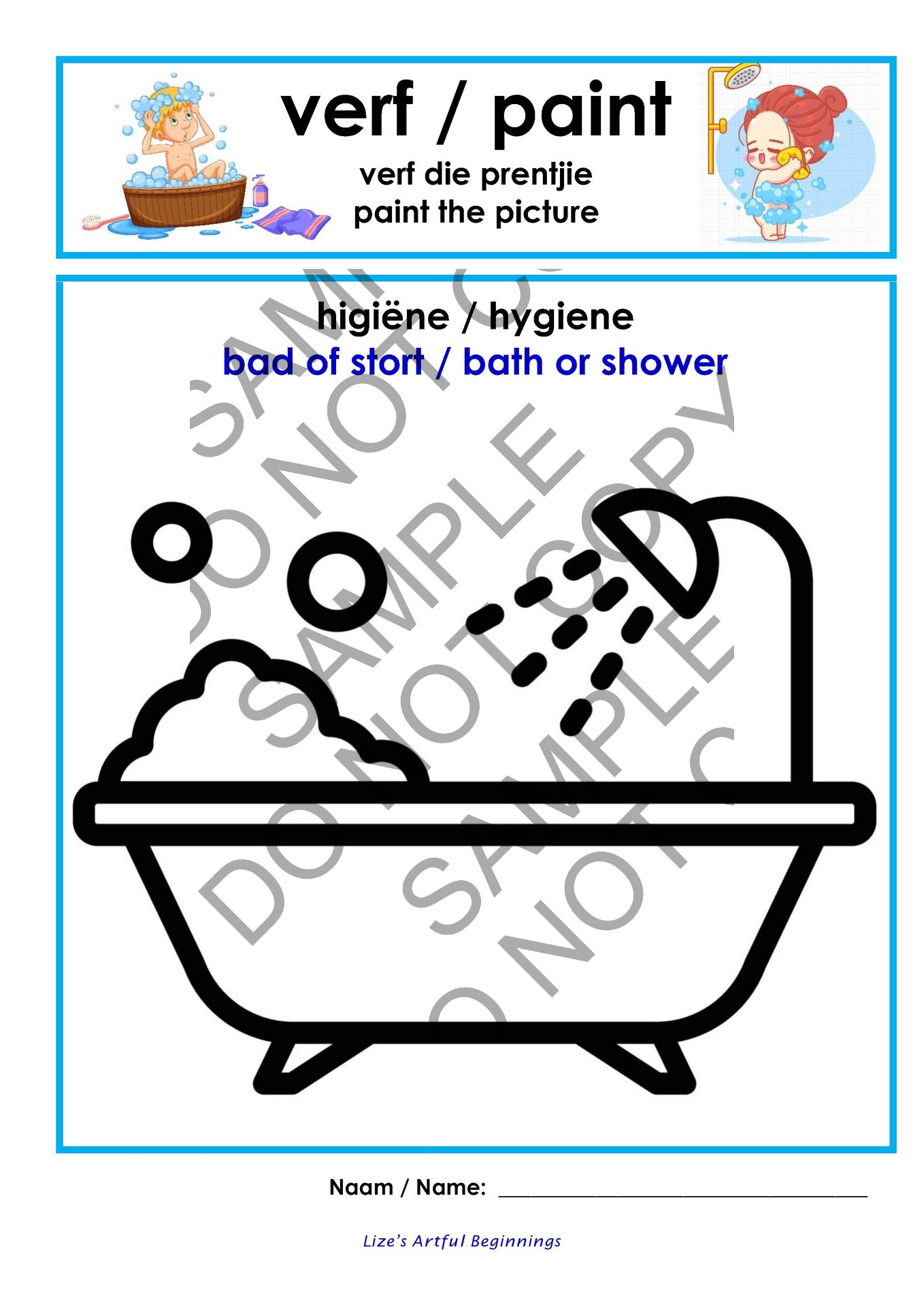 Hierdie tema pakkie bestaan uit 5 A4 kleurbladsye.