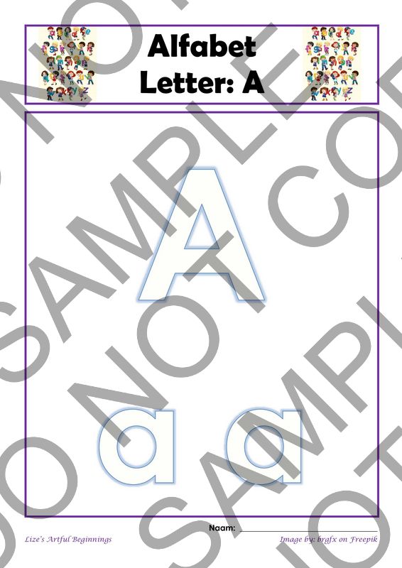 A4 Enkelbladsy werkkaart vir letter Aa oefening.