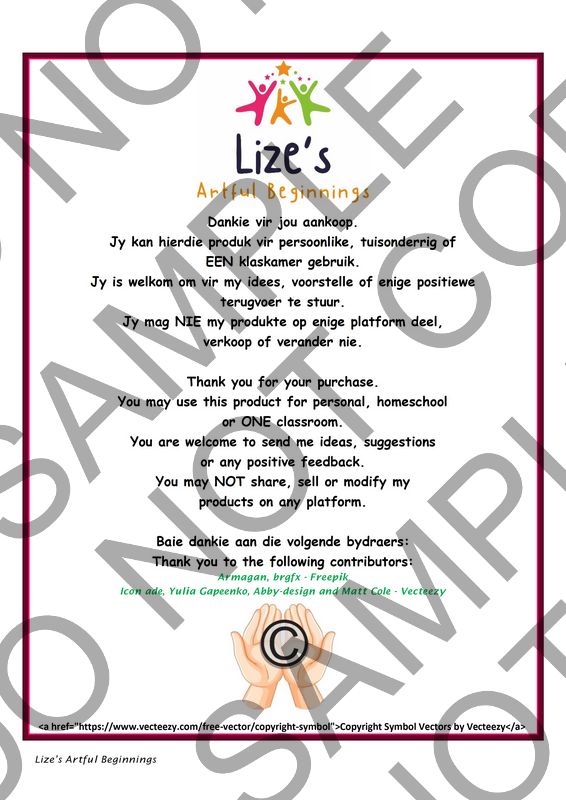 Hierdie tema pakkie bestaan uit 6 A4 kleurbladsye.