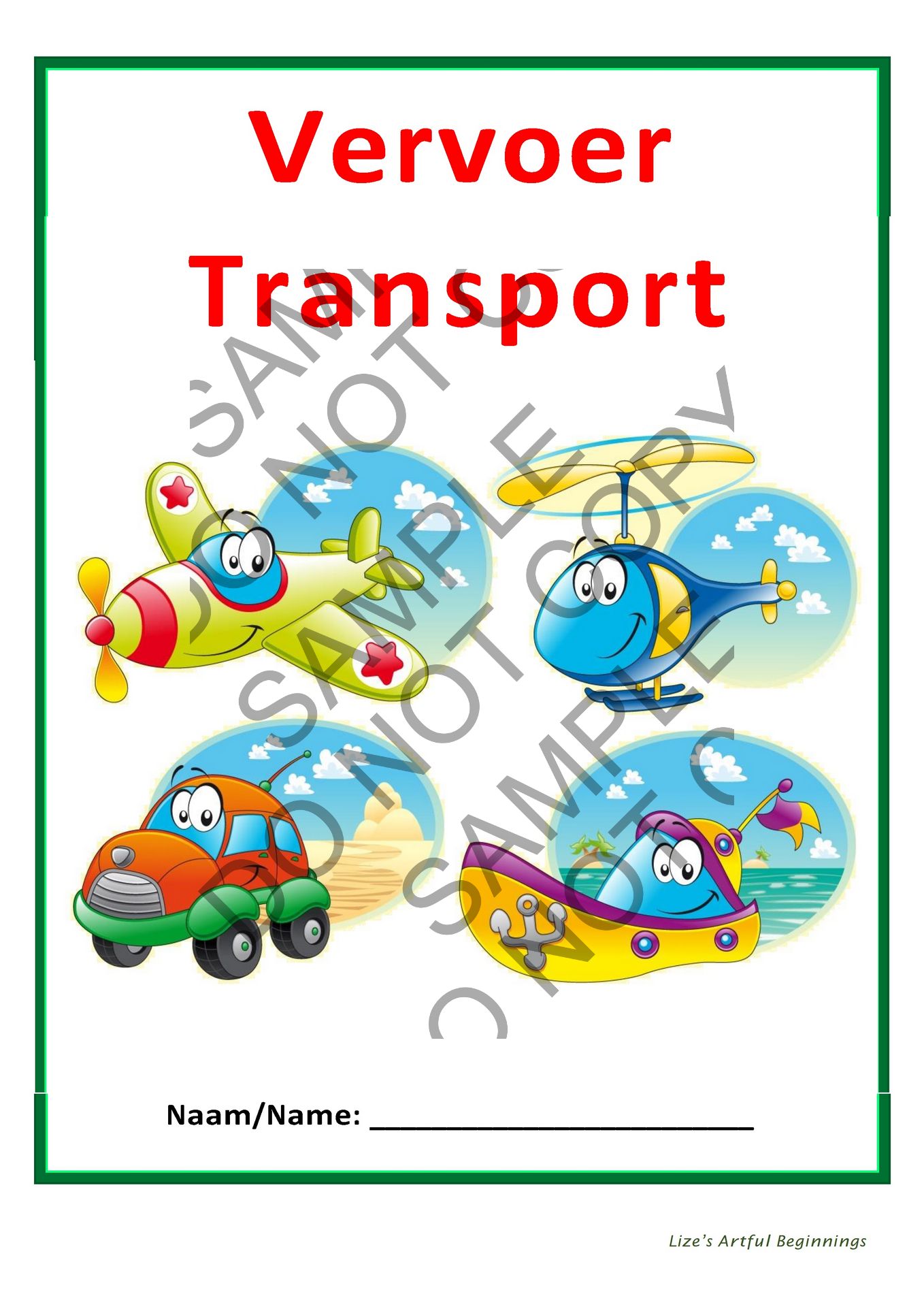 Hierdie tema pakkie bestaan uit 5 A4 kleurbladsye.
